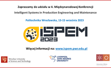Zapraszamy do udziału w IV Międzynarodowej Konferencji Intelligent Systems in Production Engineering and Maintenance ISPEM 2023, która odbędzie się we Wrocławiu w dniach 13-15.09.2023.
