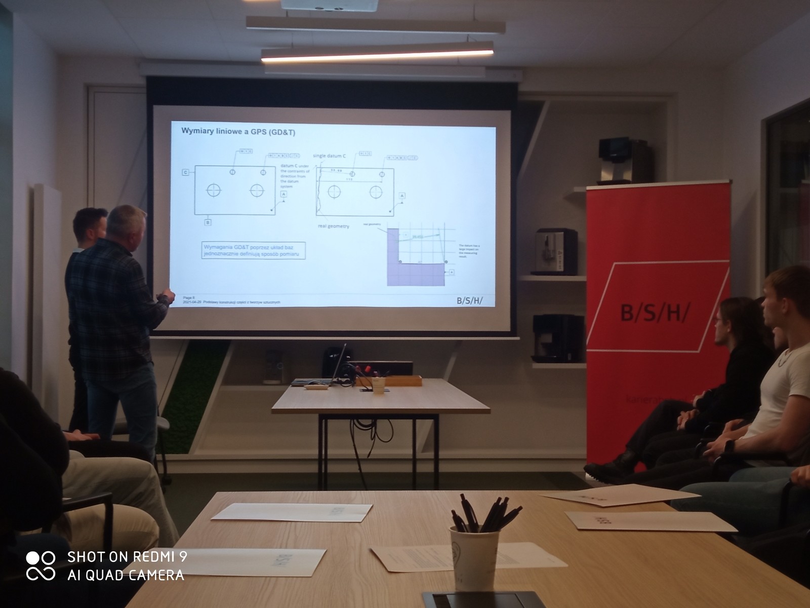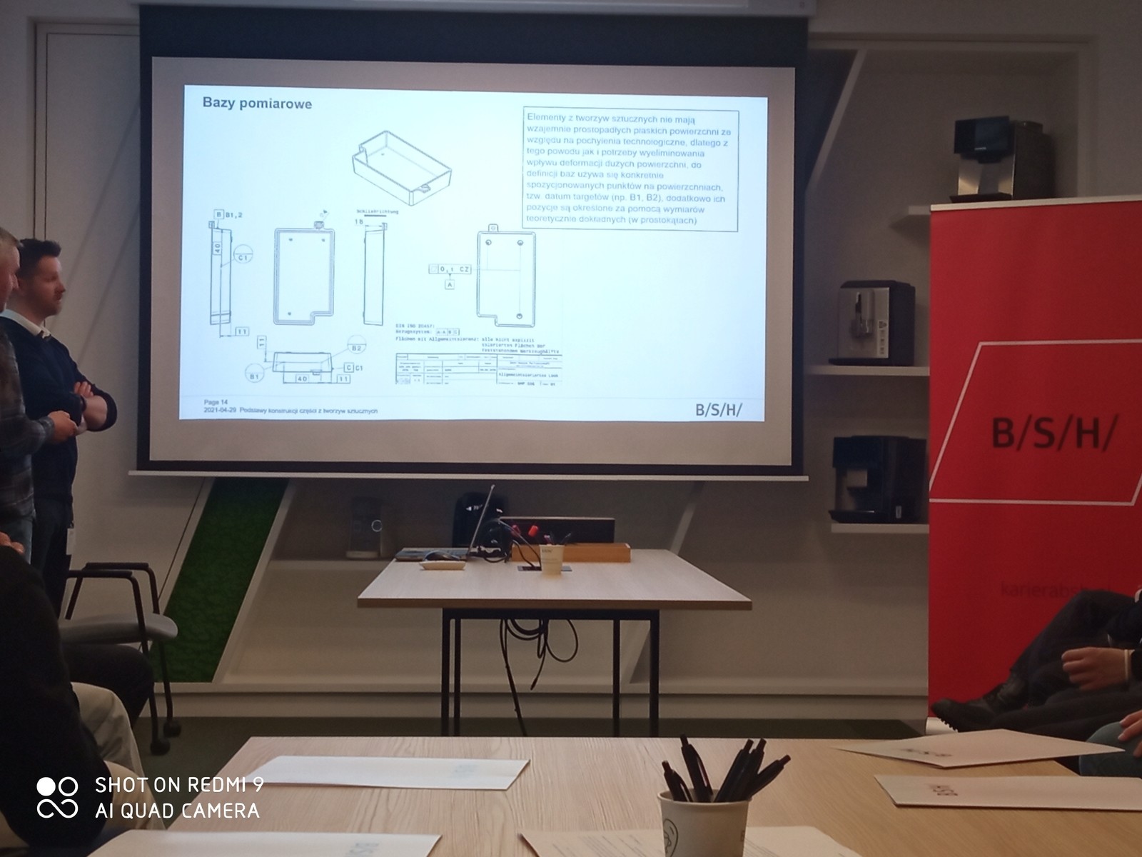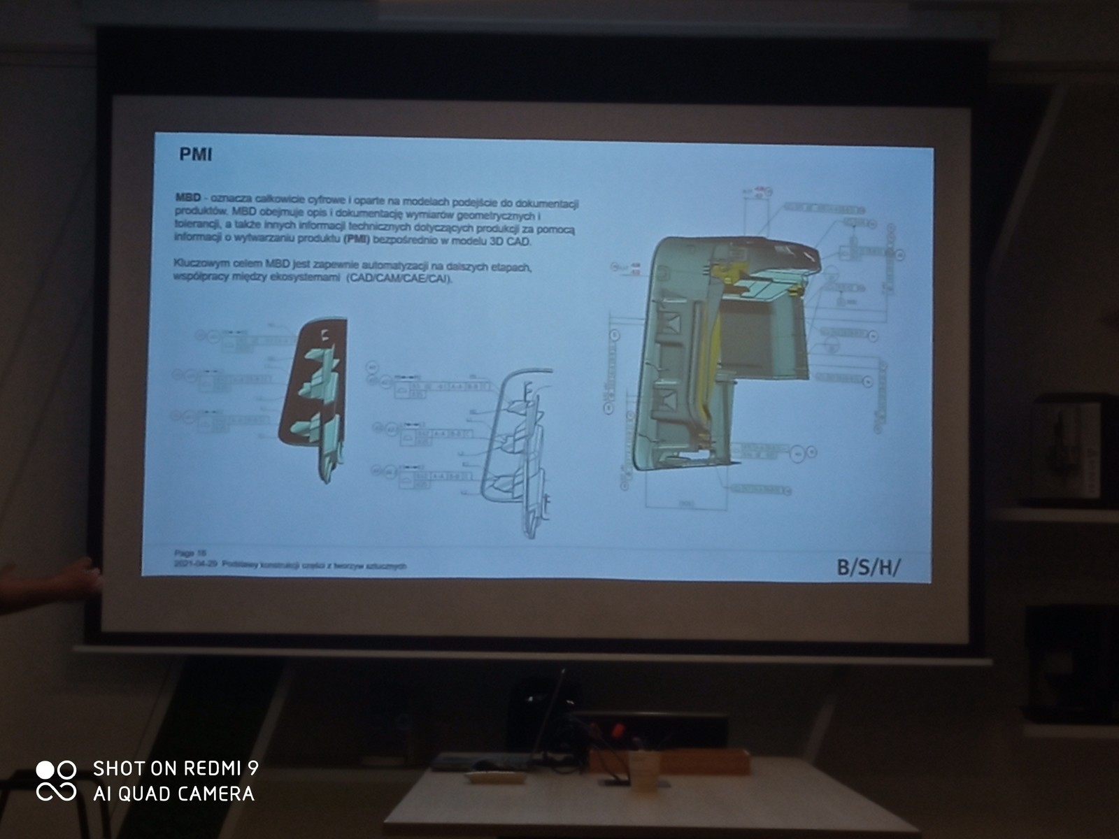 Po zakończeniu prezentacji laboratoriów przeprowadzone zostało, przez konstruktorów firmy BSH, zaplanowane szkolenie z zakresu wymiarowania wyrobów z tworzyw sztucznych, sposobów weryfikacji ich poprawności geometrycznej i wymiarowej.