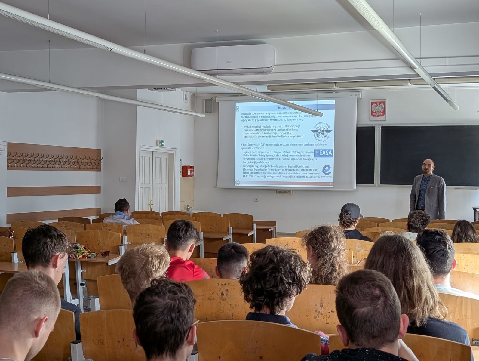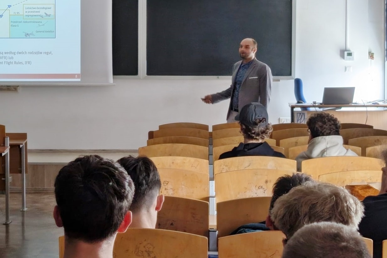 - 10:00-10:45 wykład pt. Zarządzanie ruchem lotniczym - jak to jest zorganizowane?, który wygłosił dr inż. Daniel Lichoń,