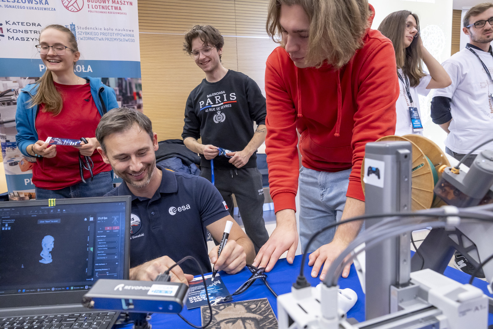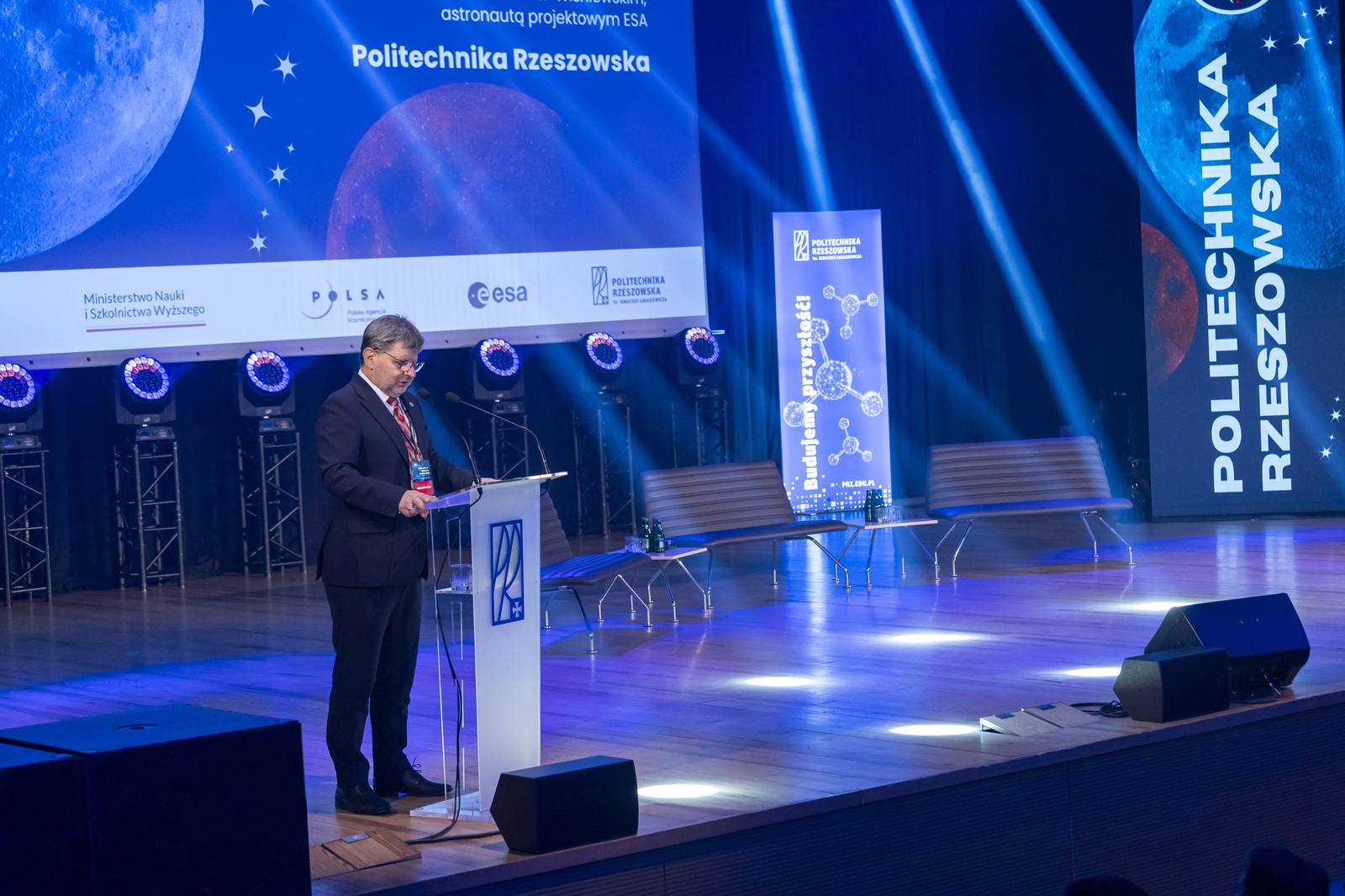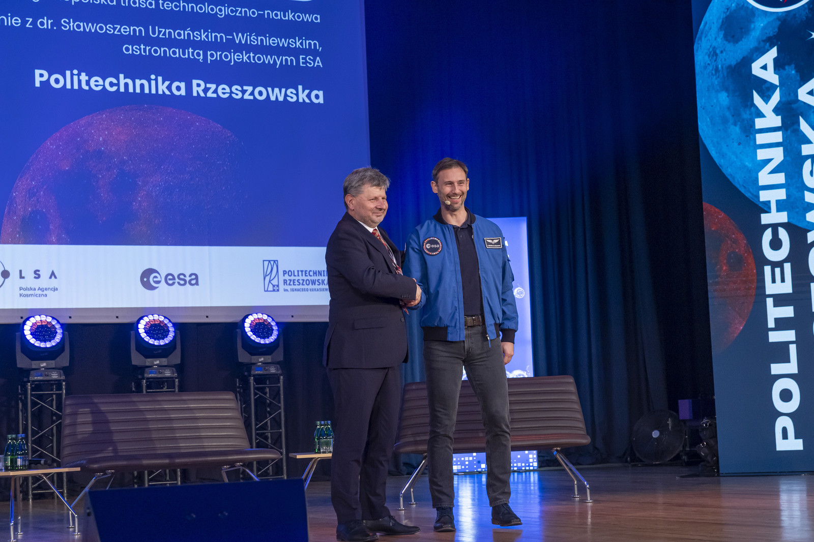 Rektor prof. Piotr Koszelnik, witając astronautę projektowego ESA, podkreślił, że spotkanie to dla naszej uczelni wyjątkowa chwila. Politechnika Rzeszowska od wielu lat rozwija bowiem badania i kształcenie w dziedzinie technologii kosmicznych. Zespoły badawcze i studenckie uczestniczą w projektach satelitarnych, pracują nad systemami sterowania i telemetrii, opracowują nowoczesne materiały oraz konstruują pojazdy eksploracyjne. Dzięki współpracy z przemysłem lotniczym i Polską Agencją Kosmiczną, w tym w ramach Centrum Obserwacyjnego POLSA w Akademickim Ośrodku Szybowcowym w Bezmiechowej, realnie przyczyniamy się do rozwoju krajowego sektora kosmicznego.