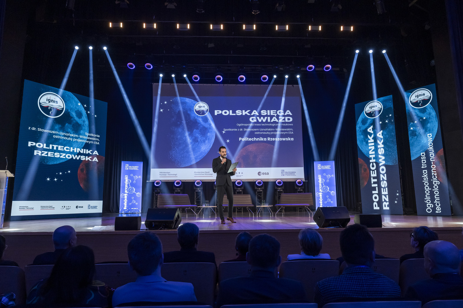 Spotkania z polskim astronautą projektowym ESA dr. Sławoszem Uznańskim-Wiśniewskim odbyło się w ramach trasy „IGNIS – Polska sięga gwiazd”. Inicjatywa realizowana przez Ministerstwo Rozwoju i Technologii, Ministerstwo Nauki i Szkolnictwa Wyższego oraz Polską Agencję Kosmiczną we współpracy z Europejską Agencją Kosmiczną.