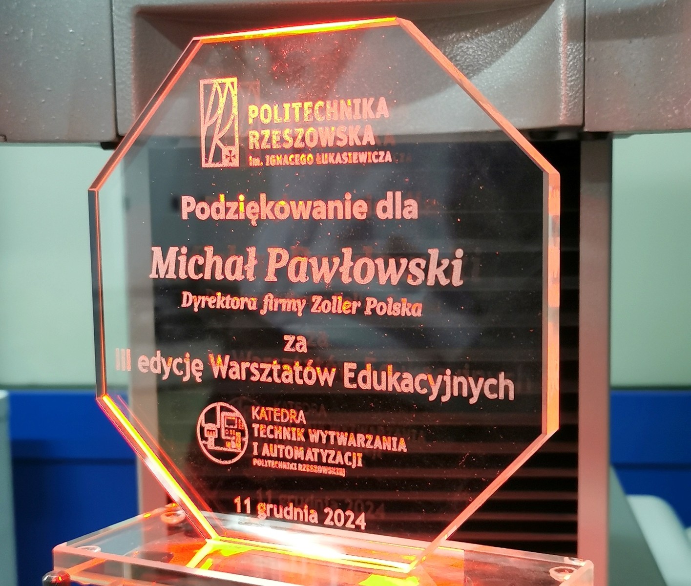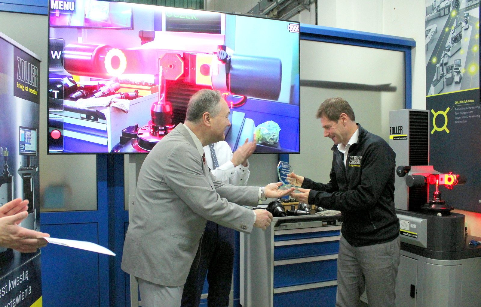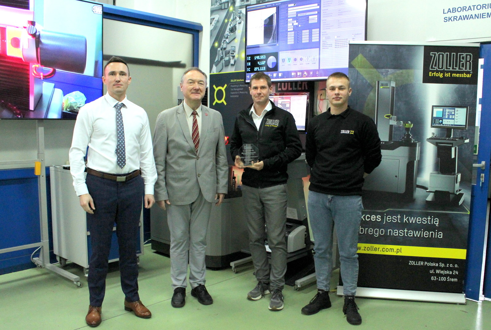 Kierownik Katedry Technik Wytwarzania i Automatyzacji, prof. dr hab. inż. Andrzej Kawalec, wyraził serdeczne podziękowania dla dr. inż. Michała Pawłowskiego, Dyrektora firmy ZOLLER POLSKA, za przeprowadzenie III edycji warsztatów, które cieszyły się dużym zainteresowaniem i zaangażowaniem uczestników. Podziękowanie miało również formę wręczenia upominku w postaci statuetki, jako symbolu uznania za wkład w rozwój kompetencji studentów. W trakcie rozmów omówiono również możliwość kontynuacji współpracy, której efektem będą kolejne edycje warsztatów, stanowiące istotny element wzbogacenia oferty edukacyjnej Wydziału Budowy Maszyn i Lotnictwa, a także dalszego integrowania środowiska akademickiego z przemysłem.