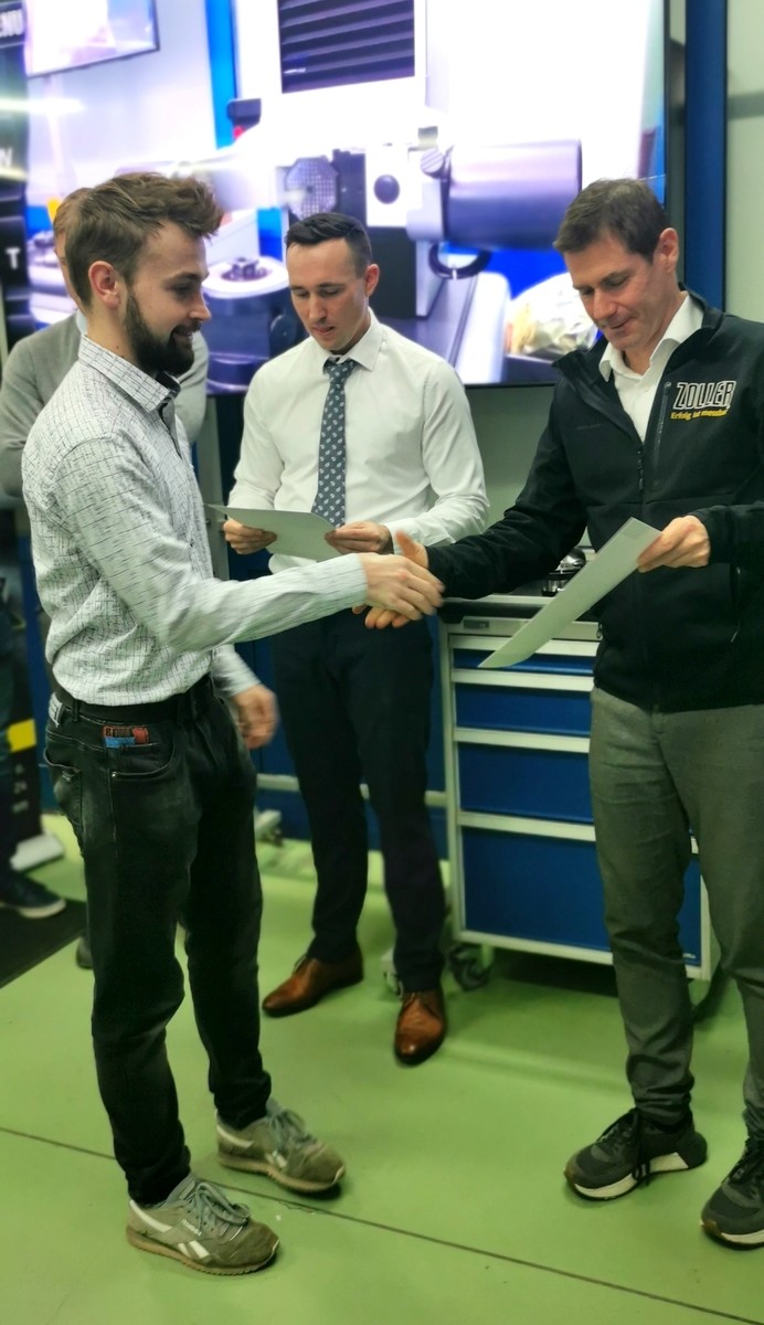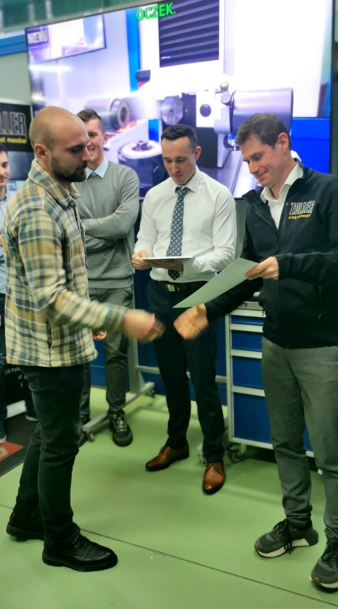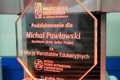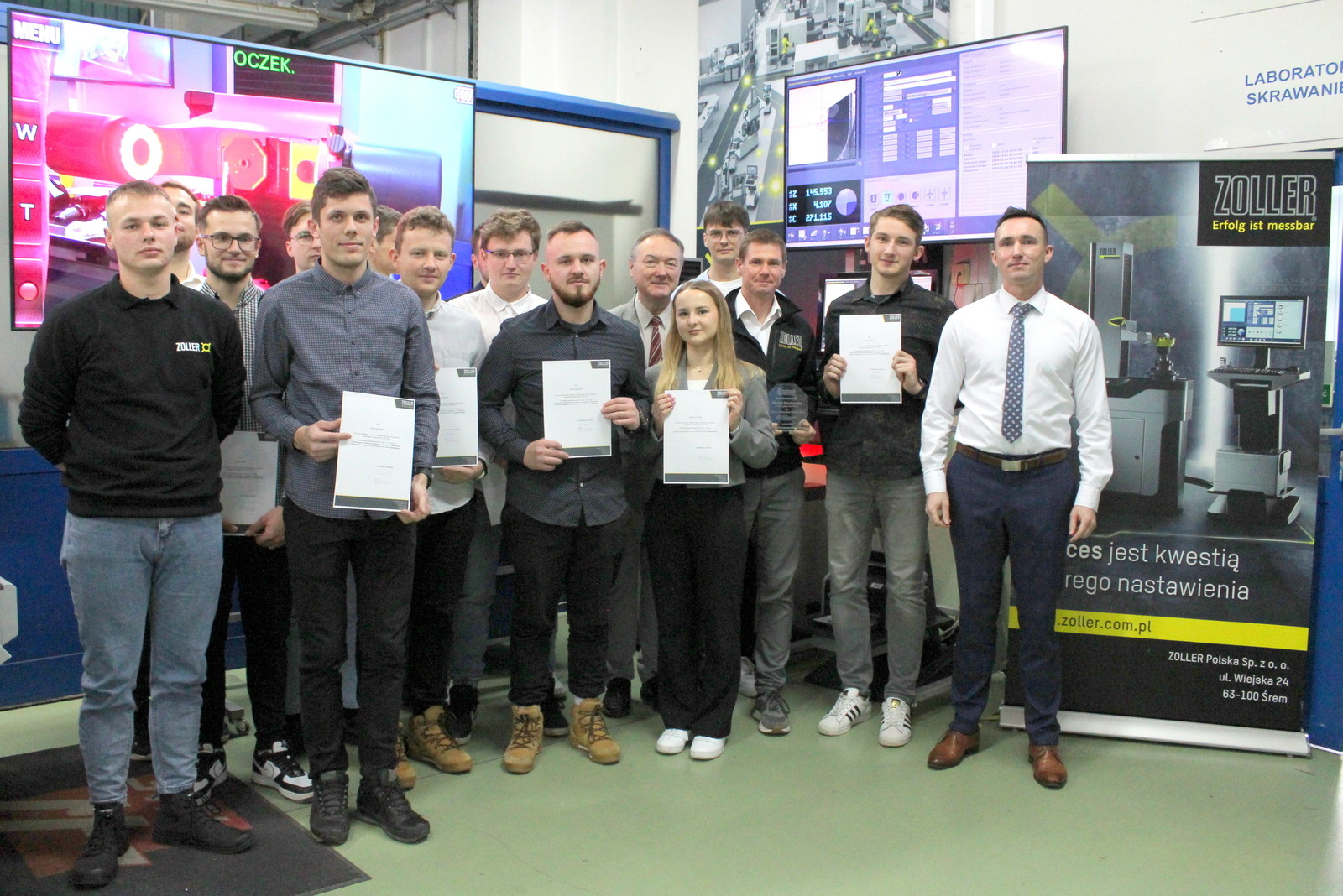 Kierownik Katedry Technik Wytwarzania i Automatyzacji, prof. dr hab. inż. Andrzej Kawalec, wyraził serdeczne podziękowania dla dr. inż. Michała Pawłowskiego, Dyrektora firmy ZOLLER POLSKA, za przeprowadzenie III edycji warsztatów, które cieszyły się dużym zainteresowaniem i zaangażowaniem uczestników. Podziękowanie miało również formę wręczenia upominku w postaci statuetki, jako symbolu uznania za wkład w rozwój kompetencji studentów. W trakcie rozmów omówiono również możliwość kontynuacji współpracy, której efektem będą kolejne edycje warsztatów, stanowiące istotny element wzbogacenia oferty edukacyjnej Wydziału Budowy Maszyn i Lotnictwa, a także dalszego integrowania środowiska akademickiego z przemysłem.
