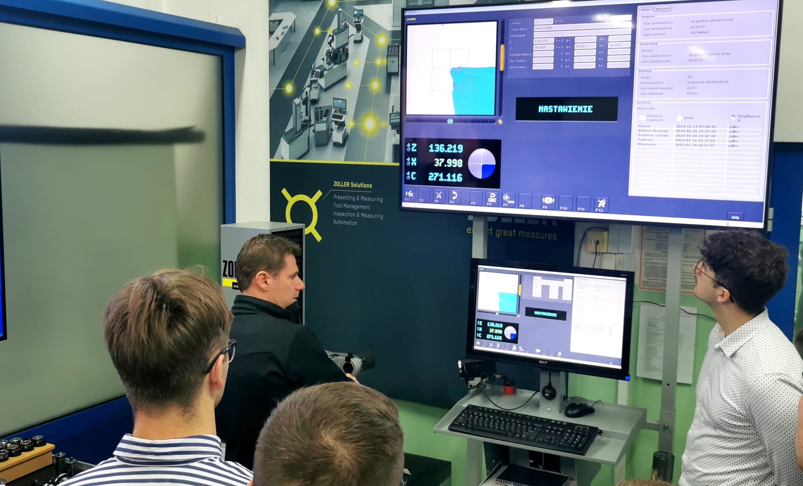 W ramach warsztatów zrealizowano zarówno sesje teoretyczne, jak i ćwiczenia praktyczne, które koncentrowały się na pomiarze geometrii narzędzi skrawających z wykorzystaniem urządzenia pomiarowego ZOLLER smarTcheck 450, będącego integralną częścią wyposażenia Katedry Technik Wytwarzania i Automatyzacji. Tematyka zajęć obejmowała zastosowanie zaawansowanych funkcji pomiarowych służących do precyzyjnego określania parametrów geometrycznych narzędzi skrawających. Podczas warsztatów omówiono również praktyczne aspekty zarządzania gospodarką narzędziową, uwzględniając wyzwania i możliwości związane z implementacją nowoczesnych technologii w kontekście czwartej rewolucji przemysłowej (Industry 4.0). Wykorzystane przykłady ilustrowały praktyczne aspekty integracji narzędzi pomiarowych z systemami automatyzacji procesów produkcyjnych, co stanowi istotny element rozwoju przemysłu w XXI wieku.