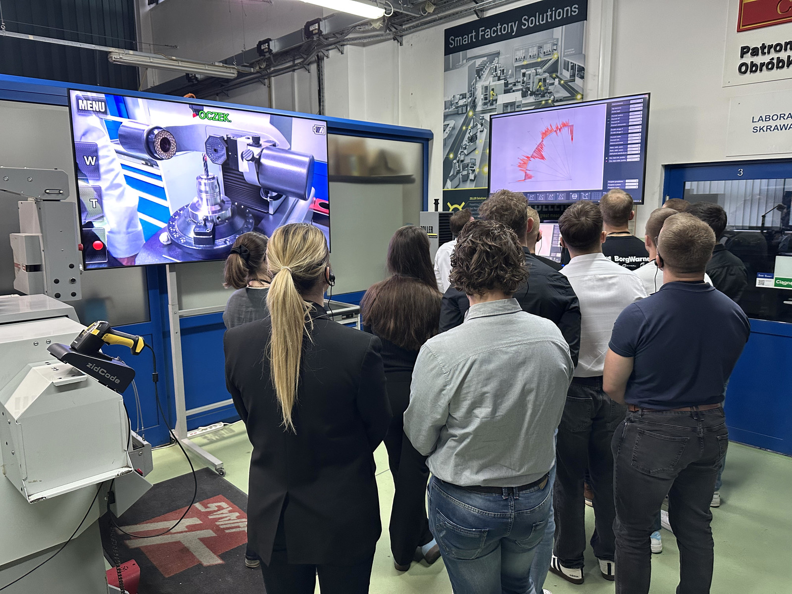 - pokazy automatycznego przesyłu danych narzędziowych bezpośrednio do obrabiarek CNC stanowiły integralny element zajęć demonstracyjnych i były realizowane z wykorzystaniem nowo wdrożonego w Katedrze rozwiązania ZOLLER zidCode. Przykłady przeprowadzono z zastosowaniem kodów QR, dedykowanego czytnika QR oraz systemu RunMyVirtualMachine, demonstrując praktyczne możliwości cyfrowej integracji systemów pomiarowych z procesami przygotowania i realizacji produkcji.