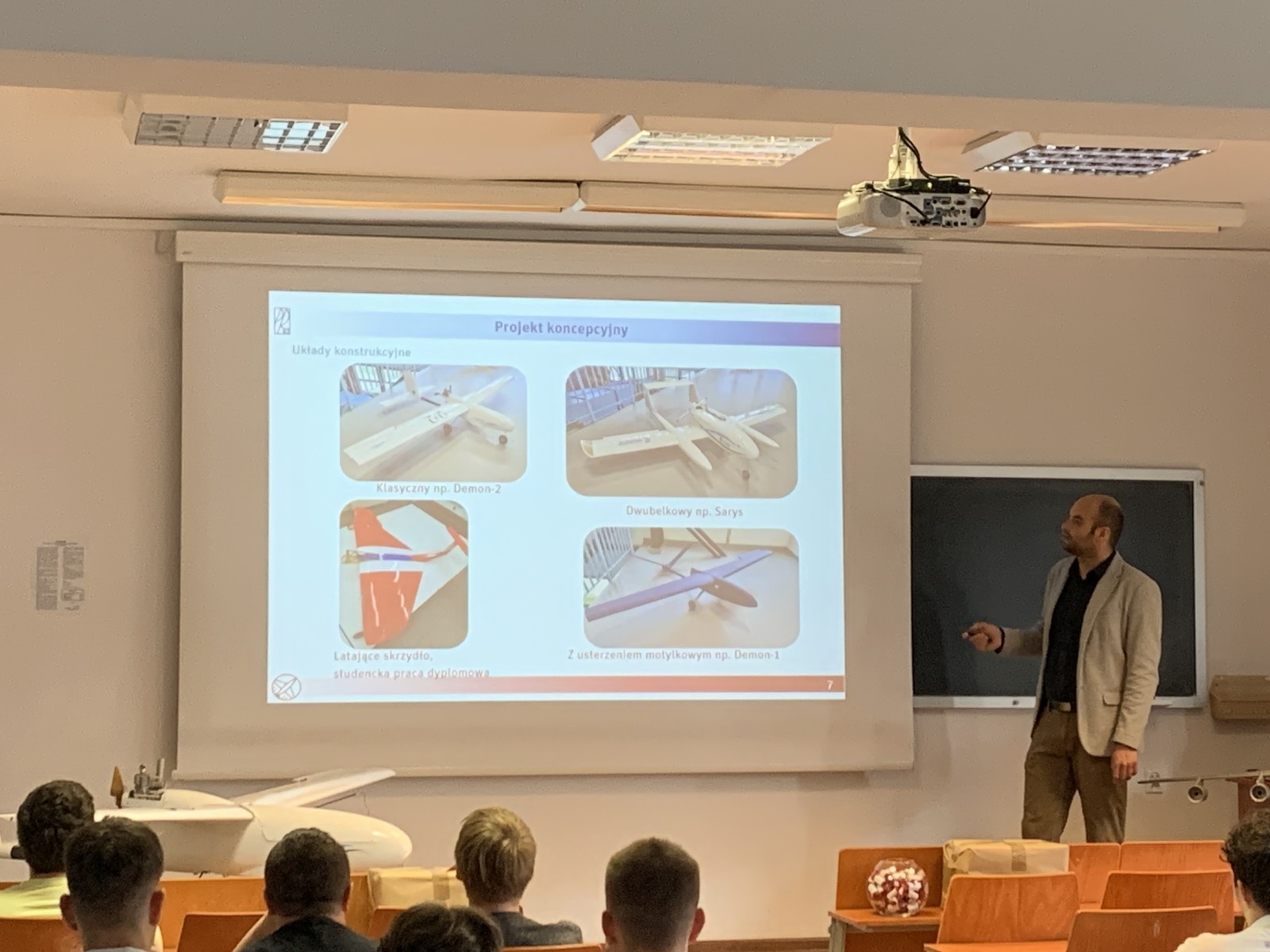 1-) „Elementy procesu projektowania samolotu”, które poprowadził dr inż. Daniel Lichoń oraz