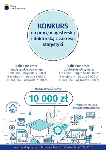 Uprzejmie informujemy, że Główny Urząd Statystyczny już po raz kolejny organizuje Konkurs na najlepszą pracę magisterską i doktorską z zakresu statystyki.