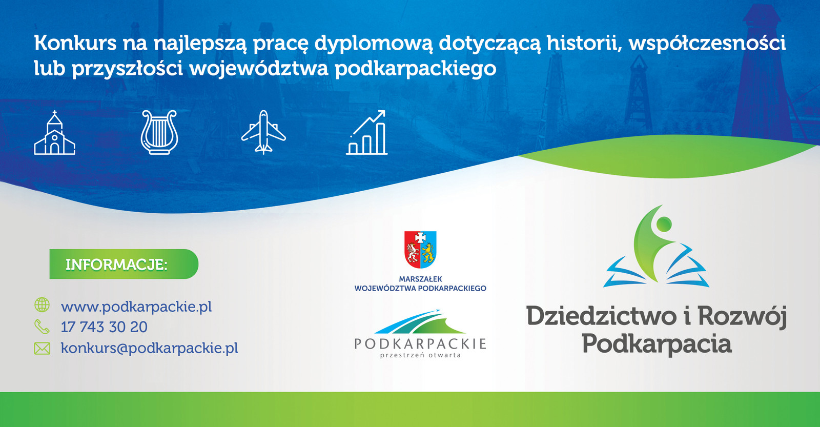 Departament Kultury i Ochrony Dziedzictwa Narodowego UMWP Marszałka Województwa Podkarpackiego serdecznie zaprasza studentów podkarpackich uczelni do udziału w trzeciej edycji Konkursu prac dyplomowych pn. „Dziedzictwo i Rozwój Podkarpacia”.