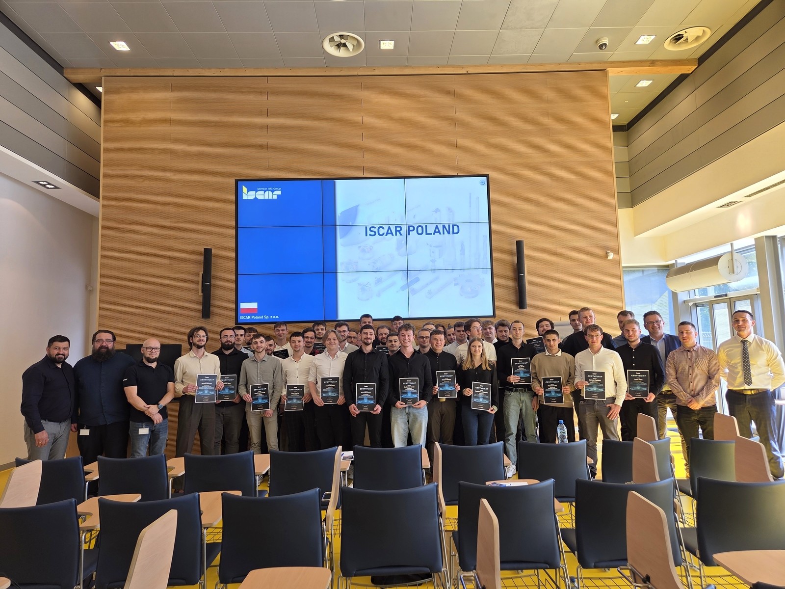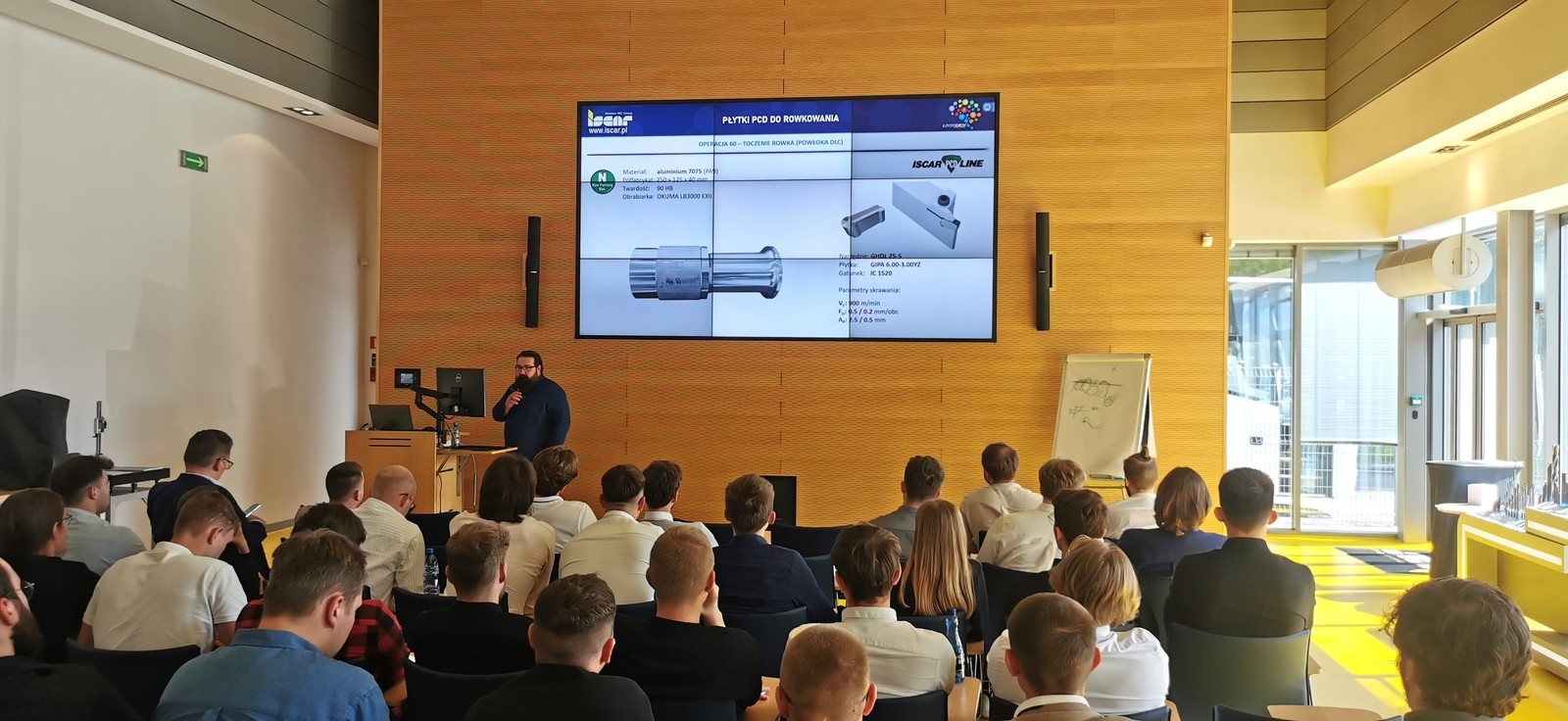 Uczestnikami szkolenia byli studenci II roku kierunku Inżynieria Mechaniczna Wydziału Budowa Maszyn i Lotnictwa oraz studenci specjalności Automatyzacja Systemów Wytwarzania i Intralogistyki prowadzonej przez Katedrę Technik Wytwarzania i Automatyzacji. W szkoleniu uczestniczyło 42 studentów, którzy otrzymali CERTYFIKATY ze szkolenia będące potwierdzeniem nabytej wiedzy i praktycznych umiejętności z zakresu nowoczesnych rozwiązań narzędziowych i digitalizacji w Przemyśle 4.0. Warsztaty szkoleniowe z ramienia firmy ISCAR przeprowadzili specjaliści ds. szkoleń i edukacji Pan Michał Zemanek (Lider Tech Center) oraz Pan Marcin Różański (Dyrektor Techniczny).