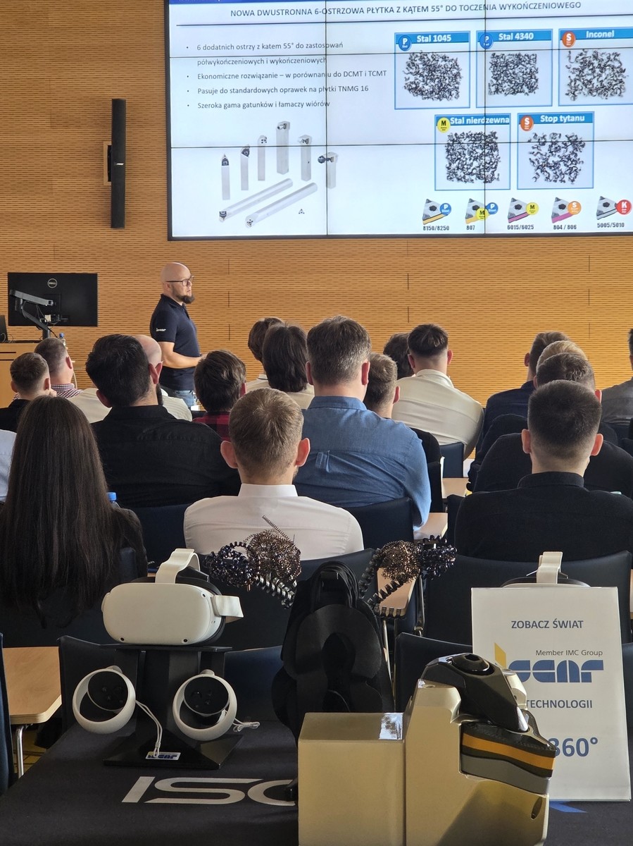 EDUKACYJNE WARSZTATY PRAKTYCZNE, które odbyły się w innowacyjnym centrum technologicznym Tech Center firmy ISCAR obejmowały najbardziej aktualne tematy z zakresu narzędzi skrawających oraz technologii obróbki CNC. Uczestnicy mieli okazję zapoznać się z budową i zasadami doboru narzędzi skrawających, a także obserwować ich pracę podczas realnych procesów obróbki na obrabiarkach CNC. Warsztaty miały na celu poszerzenie wiedzy studentów na temat nowoczesnych technologii obróbki oraz praktyczne pokazanie zastosowania narzędzi wykorzystywanych w Przemyśle 4.0. Możliwość bezpośredniego kontaktu z zaawansowanymi rozwiązaniami inżynierskimi wdrażanymi obecnie do innowacyjnej produkcji, znacząco wpłynęło na przygotowanie studentów do wyzwań współczesnego przemysłu.