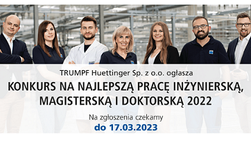 Ogólnopolski konkurs TRUMPF Huettinger na najlepszą pracę inżynierską, magisterską i doktorską.