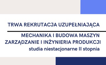 Trwa rekrutacja uzupełniająca na kierunki: Mechanika i Budowa Maszyn, Zarządzanie i Inżynieria Produkcji,