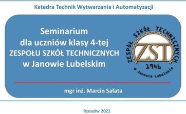 W dniu 16.03.2021r odbyło się seminarium dla uczniów 4-tej klasy Zespołu Szkół Technicznych w Janowie Lubelskim