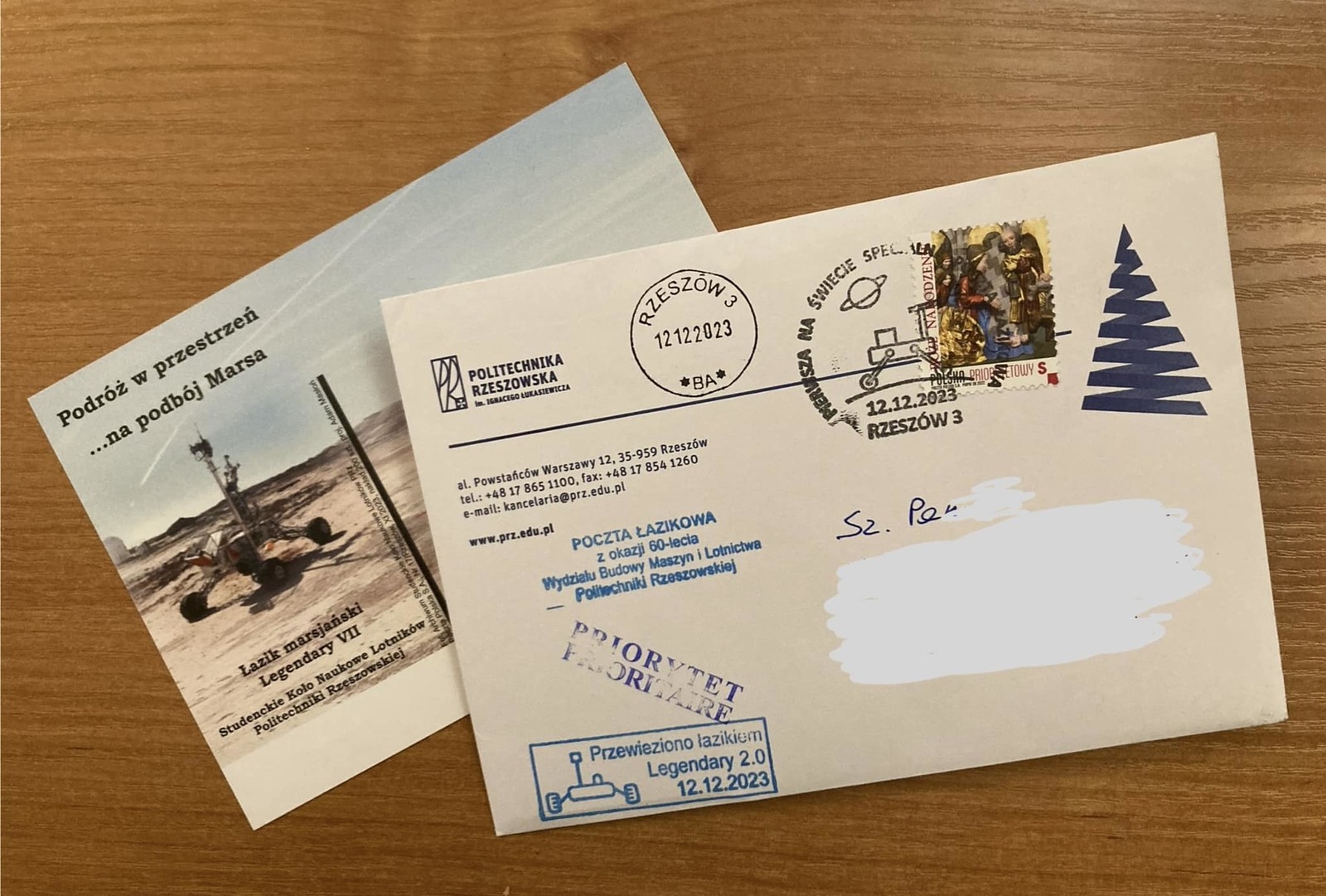 12 grudnia 2023, w ramach obchodów 60-cio lecia Wydziału Budowy Maszyn i Lotnictwa, odbyła się poczta specjalna. W ramach wydarzenia łazik marsjański skonstruowany w Studenckim Kole Naukowym Lotników dostarczył przesyłki listowe na trasie od budynku L Politechniki Rzeszowskiej do UP Rzeszów 3 na ulicy Dąbrowskiego. Stąd przesyłki zostały dostarczone do adresatów. Pomimo niesprzyjającej aury (błoto pośniegowe oraz kałuże) konstrukcja łazika doskonale wywiązała się z zadania. Wspólna inicjatywa Okręgu Rzeszowskiego Polskiego Związku Filatelistów, Poczty Polskiej oraz Politechniki Rzeszowskiej była pierwszą na świecie próbą zastosowaniem łazika do celów pocztowych.