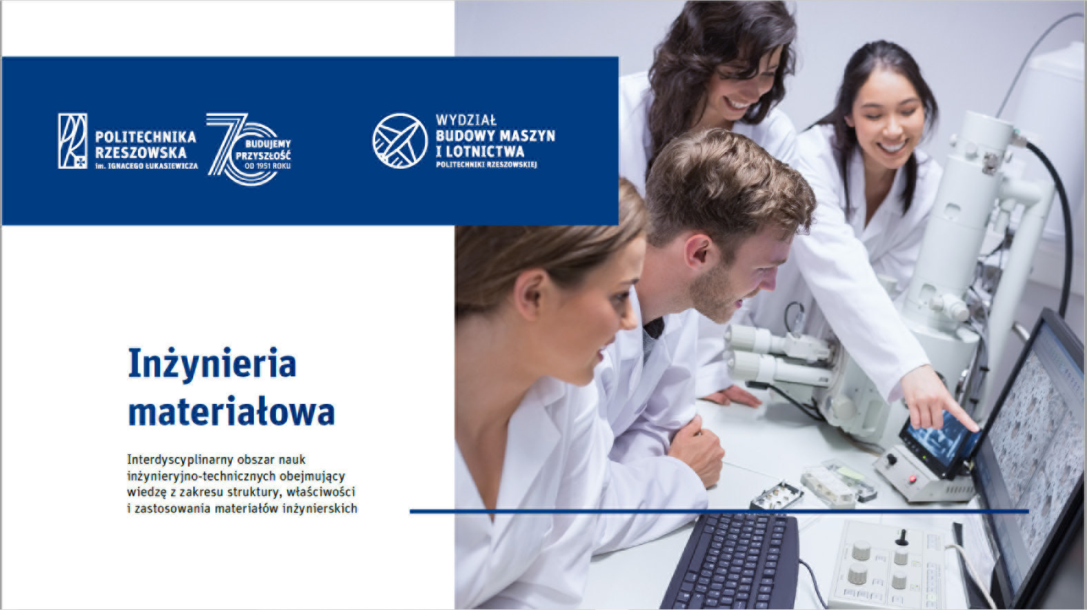 W zbliżającej się rekrutacji na studia w Politechnice Rzeszowskiej zwiększono do 60 limit przyjęć na kierunek Inżynieria materiałowa. Inżynieria materiałowa jest interdyscyplinarnym obszarem nauki, obejmującym wiedzę z zakresu struktury, właściwości i zastosowania materiałów inżynierskich. Na studiach stacjonarnych I-go stopnia możliwe są do wyboru dwie specjalności: