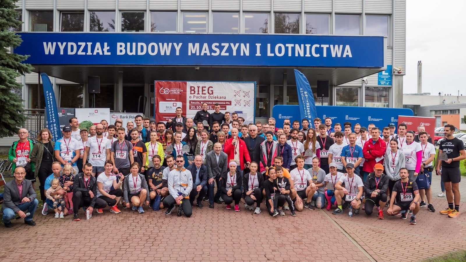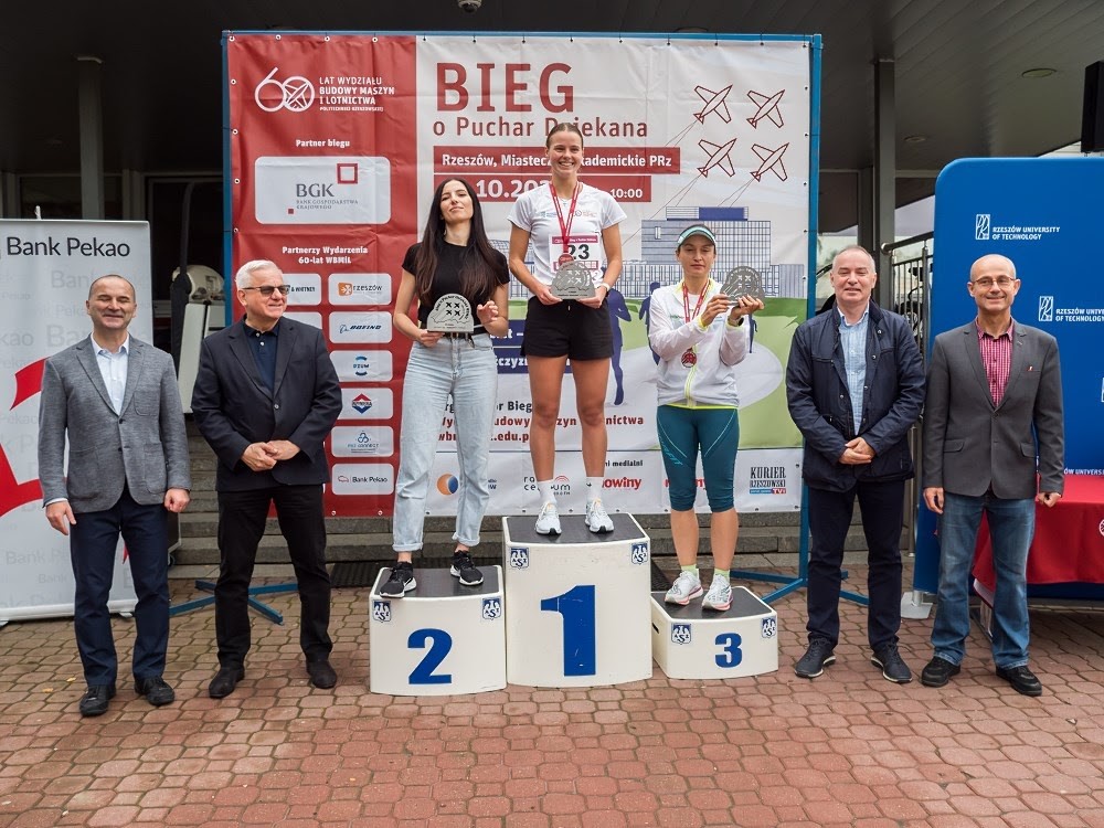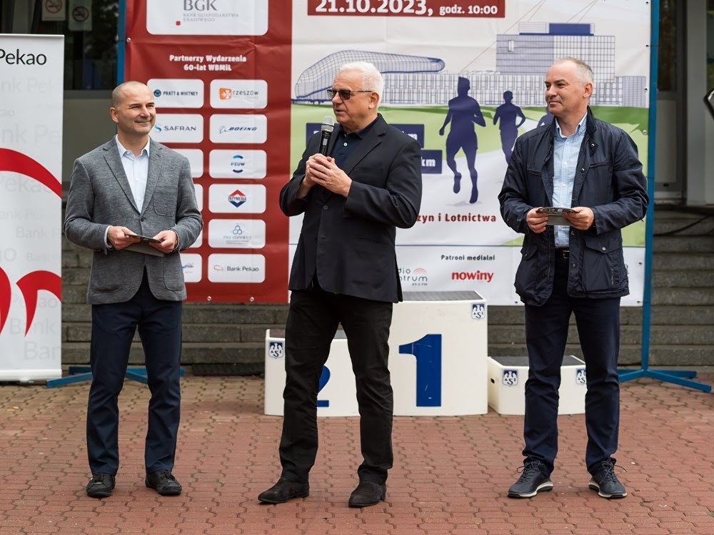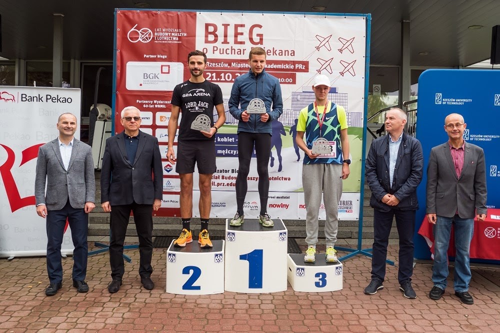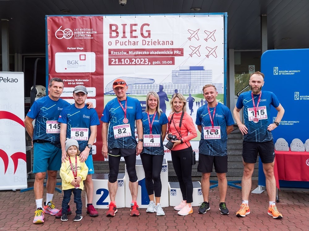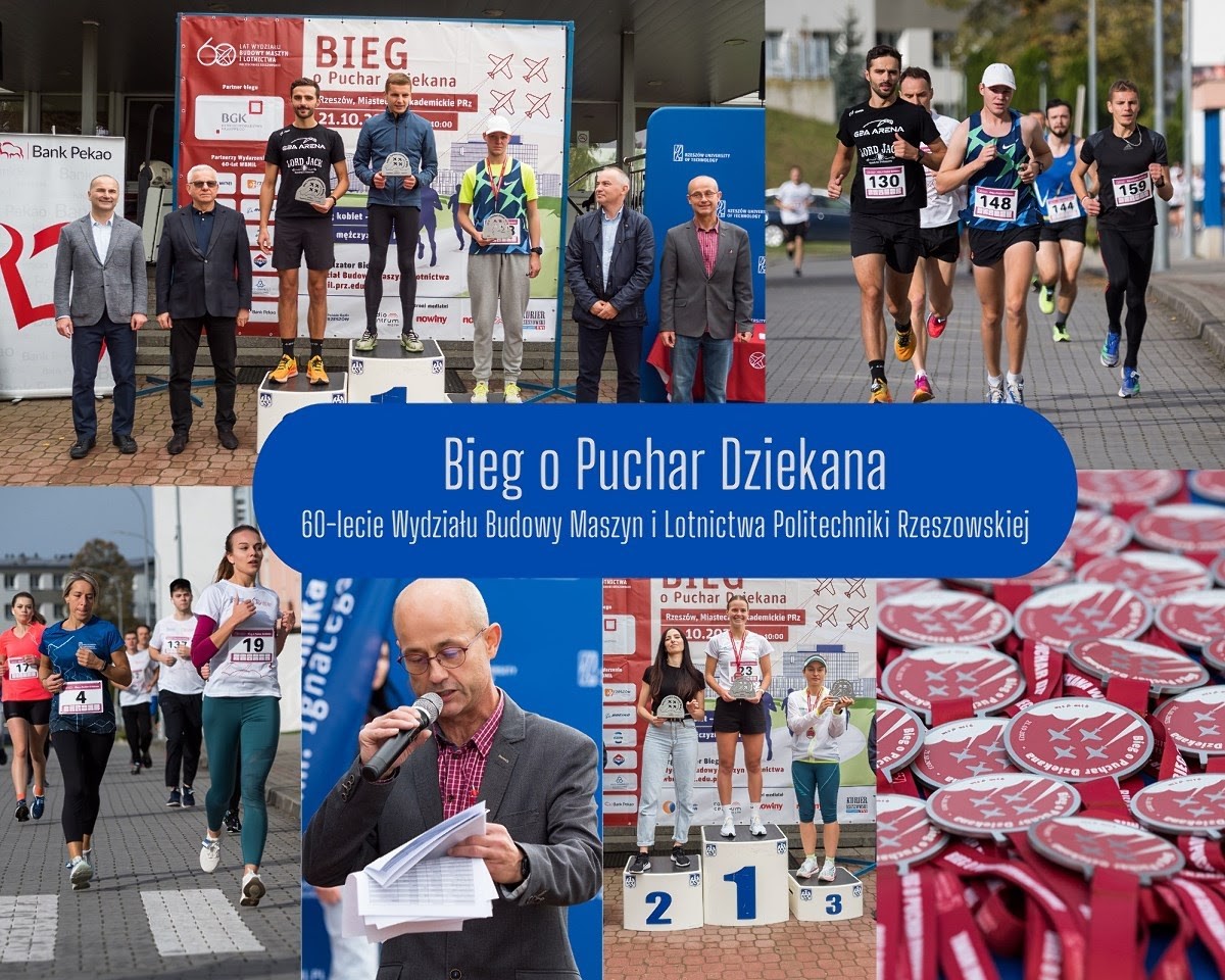 W sobotę 21.10.2023 w kampusie Politechniki Rzeszowskiej odbył się bieg z okazji 60-lecia Wydziału Budowy Maszyn i Lotnictwa, którego gospodarzem był Dziekan Wydziału dr hab. inż. Adam Marciniec, prof. PRz. Sześć, ta symboliczna liczba kilometrów przeznaczona była dla mężczyzn, panie miały bowiem do pokonania połowę czyli 3 km. Przed biegiem odbyła się obowiązkowo wspólna rozgrzewka, którą poprowadziła Marzena Swiątek z CSA PRz. W biegu na dystansie 3 km wzięło udział prawie 40 pań, a zwyciężyła Aleksandra Michalska (czas 12:09) przed Anetą Oleksowicz-Martuszewską (12:39) i Elżbietą Dzierżak (13:21). W biegu na dystansie 6 km , na którym rywalizowali mężczyźni wzięła udział prawie setka uczestników zwyciężył Michał Wojciechowski (czas 20:48) przed Adamem Rybińskim (20:56) i Kacprem Trocińskim (21:08).