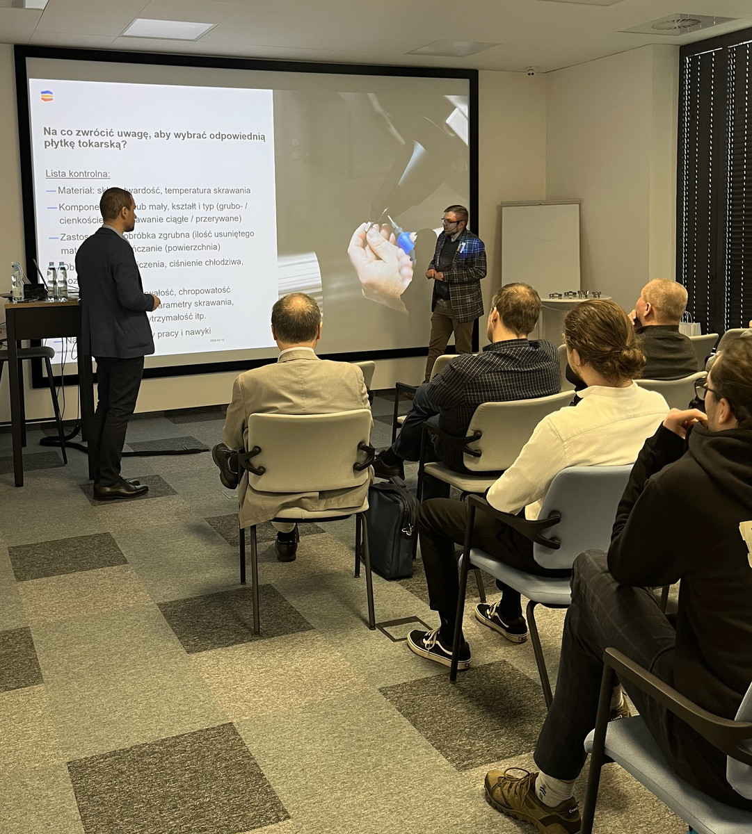 - Janusz Walczak (Dyrektor Techniczny) i Michał Łesejko (STEP Master) z Seco Tools wspólnie zaprezentowali wpływ geometrii narzędzia na formowanie wióra oraz praktyczne metody jego kontroli. Omówili także, jak optymalizacja parametrów skrawania może poprawić zarówno jakość obróbki, jak i trwałość narzędzi.