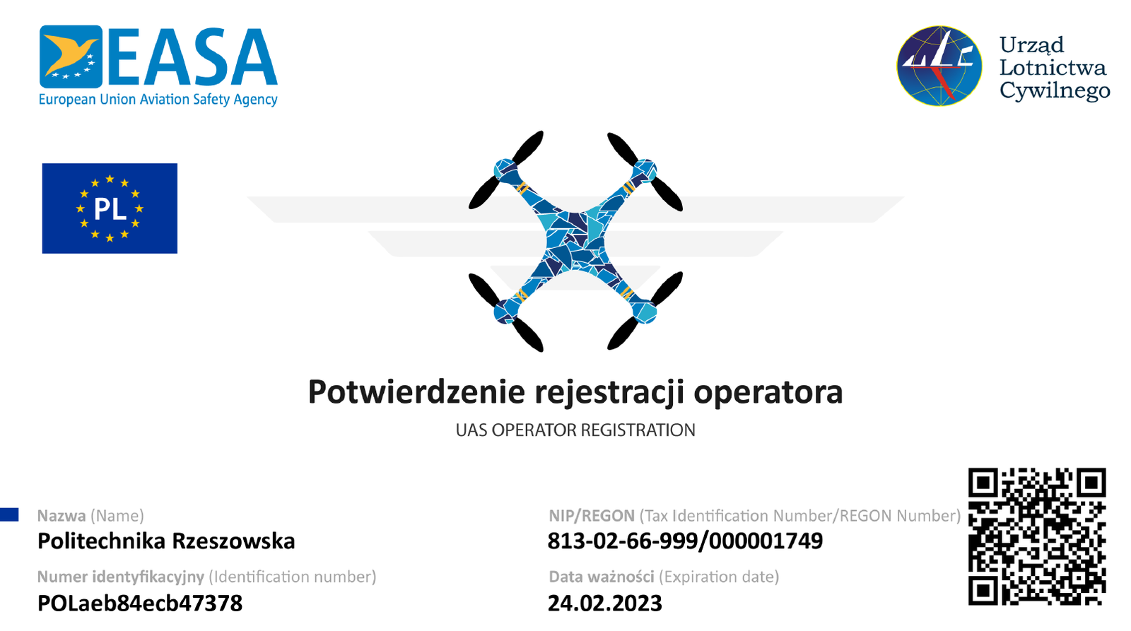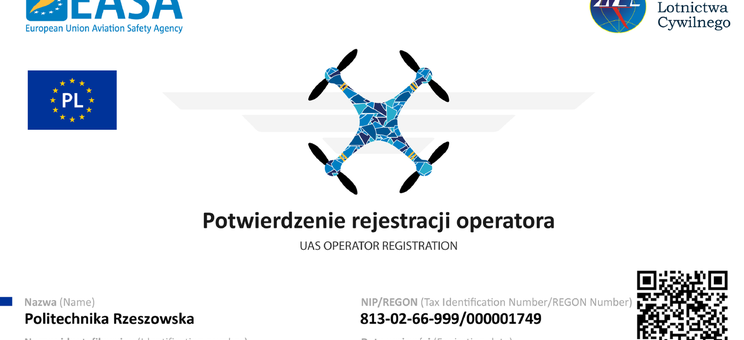 Politechnika Rzeszowska w ramach przygotowań do uruchomienia na WBMiL i LBLiK w Bezmiechowej szkoleń operatorów bezzałogowych statków powietrznych została zarejestrowana jako oficjalny operator tego rodzaju statków powietrznych.