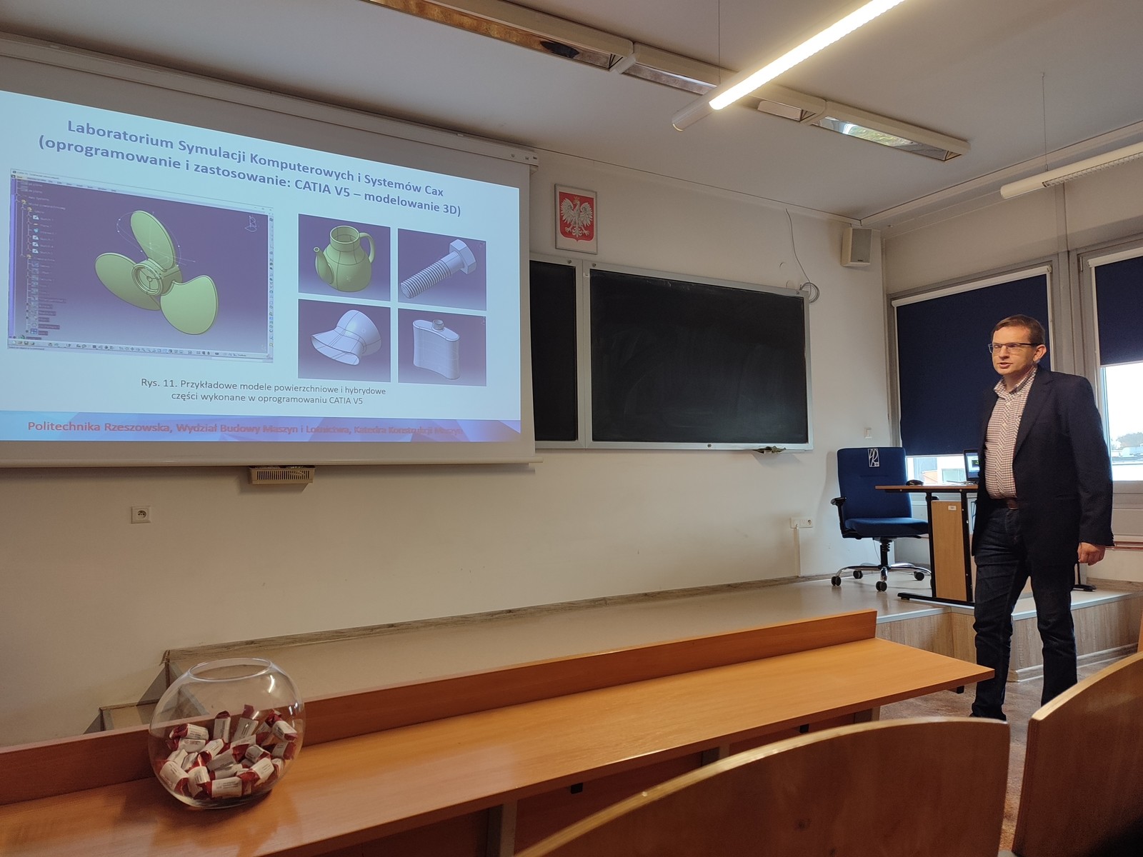 Pierwszy wykład, który odbył się tego dnia, poprowadził dr inż. Marcin Olech z Zakładu Informatyki. Temat wykładu brzmiał: Biologia w informatyce - algorytm genetyczny w problemie plecakowym. Drugi z wykładów pt. Modelowanie 3D - CAD z inżynierią odwrotną poprowadził dr hab. inż. Tomasz Dziubek, prof. PRz i dr inż. Bartłomiej Sobolewski z Katedry Konstrukcji Maszyn.