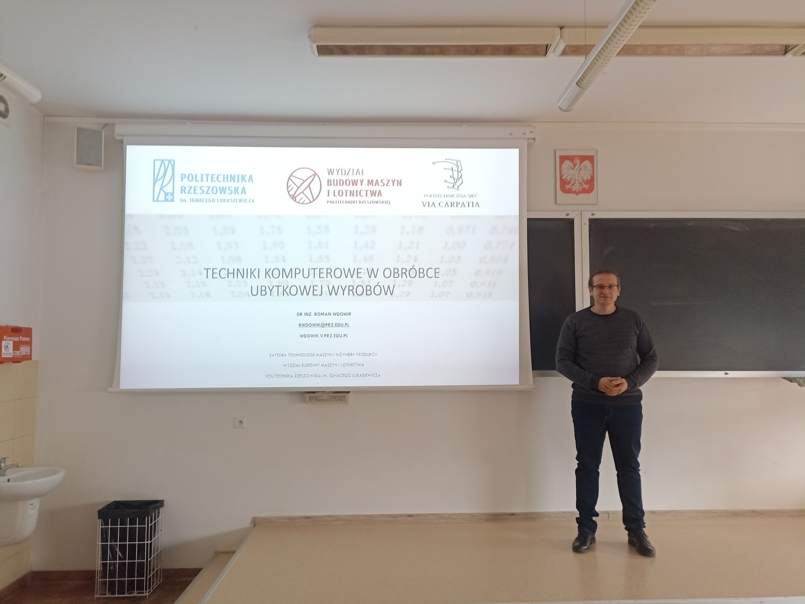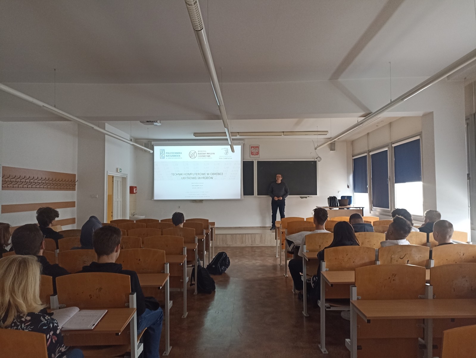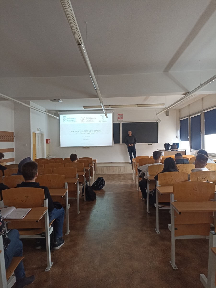 Zajęcia pt. Techniki komputerowe w obróbce ubytkowej wyrobów poprowadził dr inż. Roman Wdowik, pracownik Katedry Technologii Maszyn i Inżynierii Produkcji WBMiL. W zajęciach wzięli udział uczniowie Zespołu Szkół Mechanicznych z Rzeszowa. Wykład cieszył się dużym zainteresowaniem uczniów.
