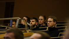 Głos zabrał dziekan Wydziału Budowy Maszyn i Lotnictwa dr hab. inż. Adam Marciniec, prof. uczelni, zwracając się do obecnych na auli podkreślił, że dzięki takim spotkaniom rozszerzą swoją wiedzę o działalności firm, możliwościach odbywania praktyk i staży, realizacji prac dyplomowych, jak również przyszłego zatrudnienia. Pan Dziekan stwierdził, że takie inicjatywy, mają na celu zbliżać i zacieśniać współpracę między środowiskami akademickimi i gospodarczymi.